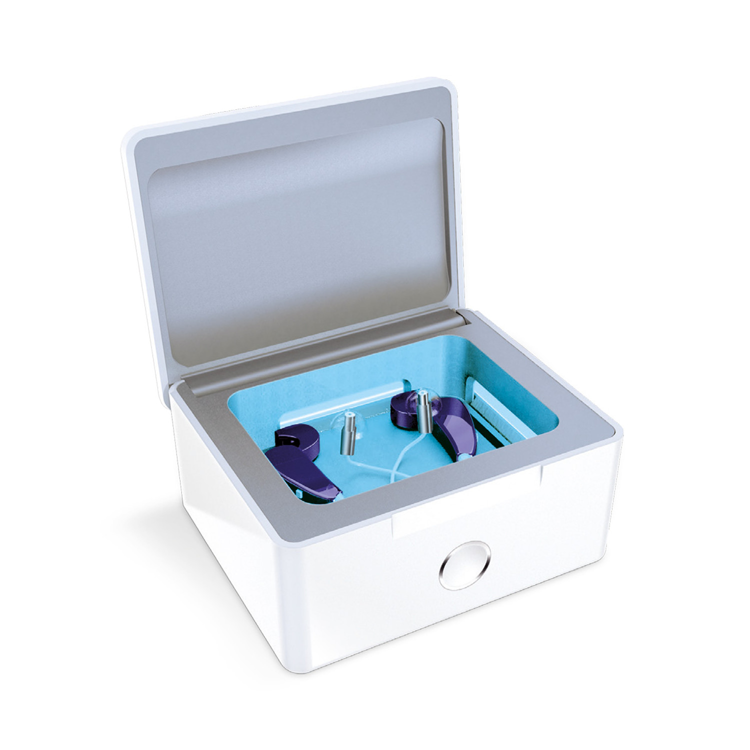 In a cycle of only 45 minutes, the hearing aids are not only dried but also disinfected by UV-C light.