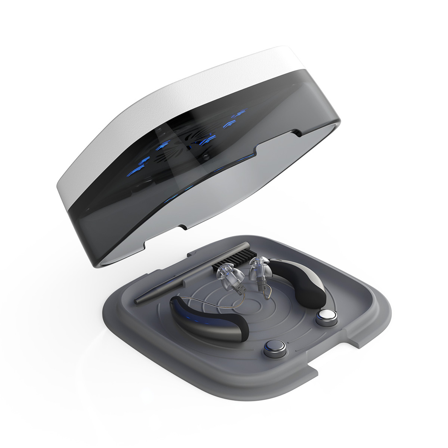 The dry-turbo cd 2.1® is a compact and powerful drying system specially designed for the fast and effective drying of hearing aids and related components. Thanks to the combination of a high-performance fan and UV light with antimicrobial properties, this device provides optimal care for your hearing aids.