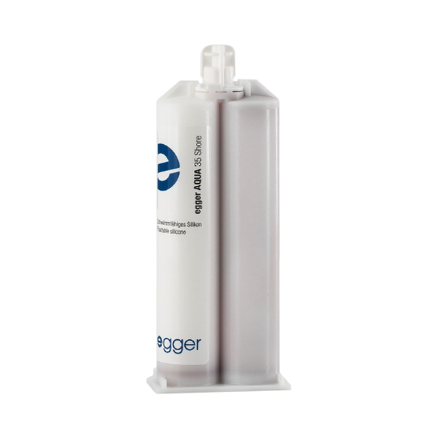 The cold-curing material is exceptionally stretchy and easy to work with. This material also has the practical characteristic of remaining afloat, which reduces the likelihood of swim pieces being immediately lost if they fall out. egger Aqua can be used both with the direct method and the indirect method, in which a negative mold (duplicating material or plaster) is used.