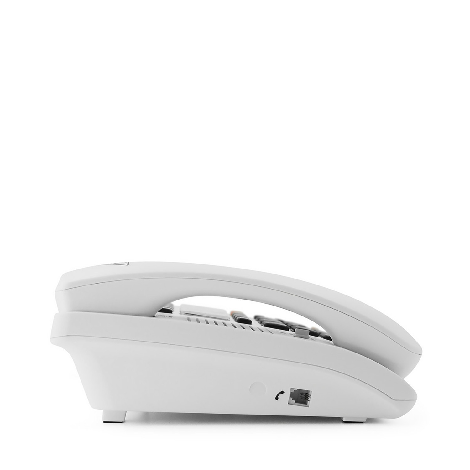 Simple landline telephone with large keys and clear display. Ringer volume is extra loud up to +90 dB and amplification for speech during calls goes up to +40 dB. Quick calls to three favorite numbers can be made via the photo memory keys. The phone is equipped with a speakerphone function and LED indicator for incoming calls. It is possible to have the name spoken out for incoming calls from stored numbers.