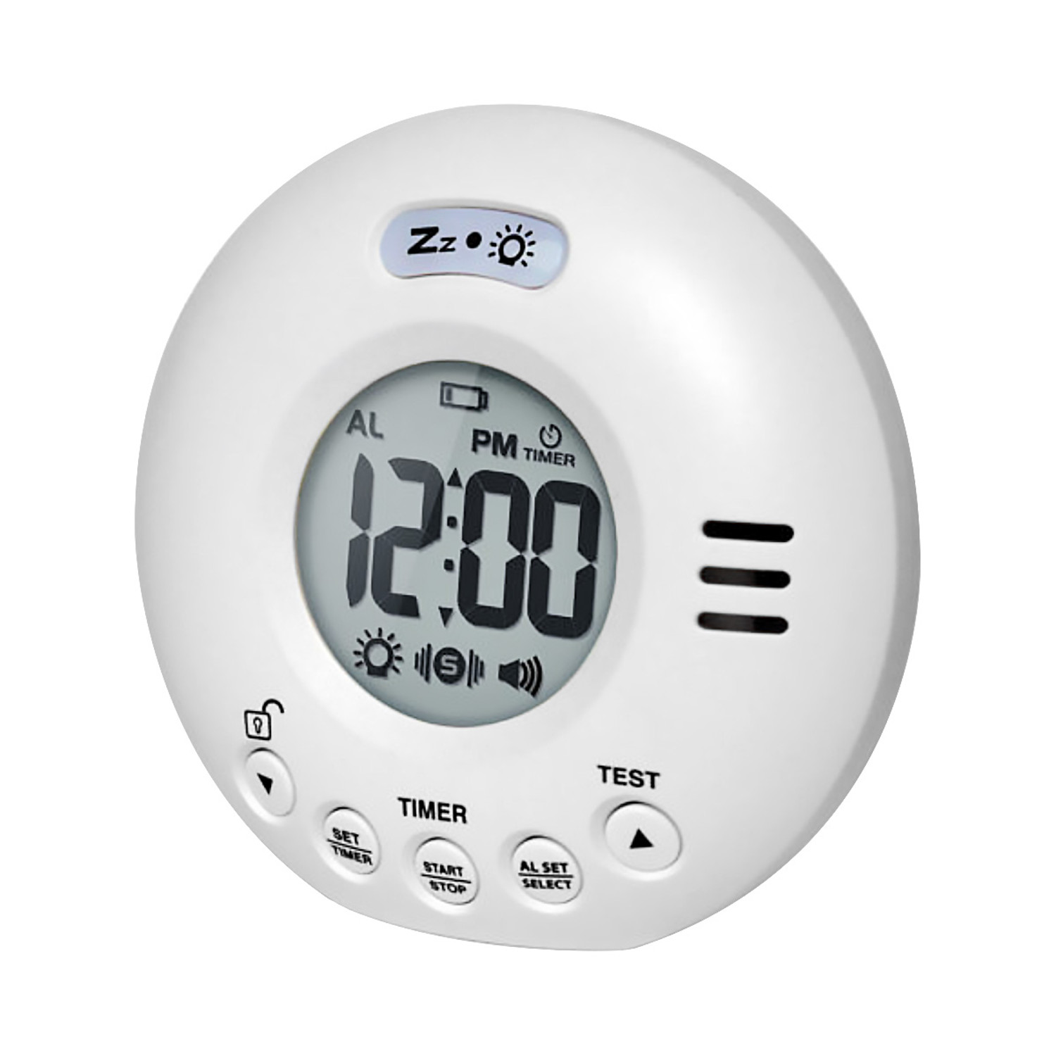 Handy alarm clock for travel. Features an extra loud wake-up alarm up to +75 dB at 1 meter distance. The volume is adjustable to two settings. Furthermore, this alarm clock features a vibration function and light flashes. Can also be used as a flashlight.