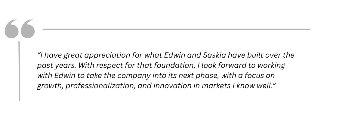 Edwin Mellink will remain Managing Director and continue to lead daily operations, with an unwavering focus on customers, quality, and innovation. He emphasizes: