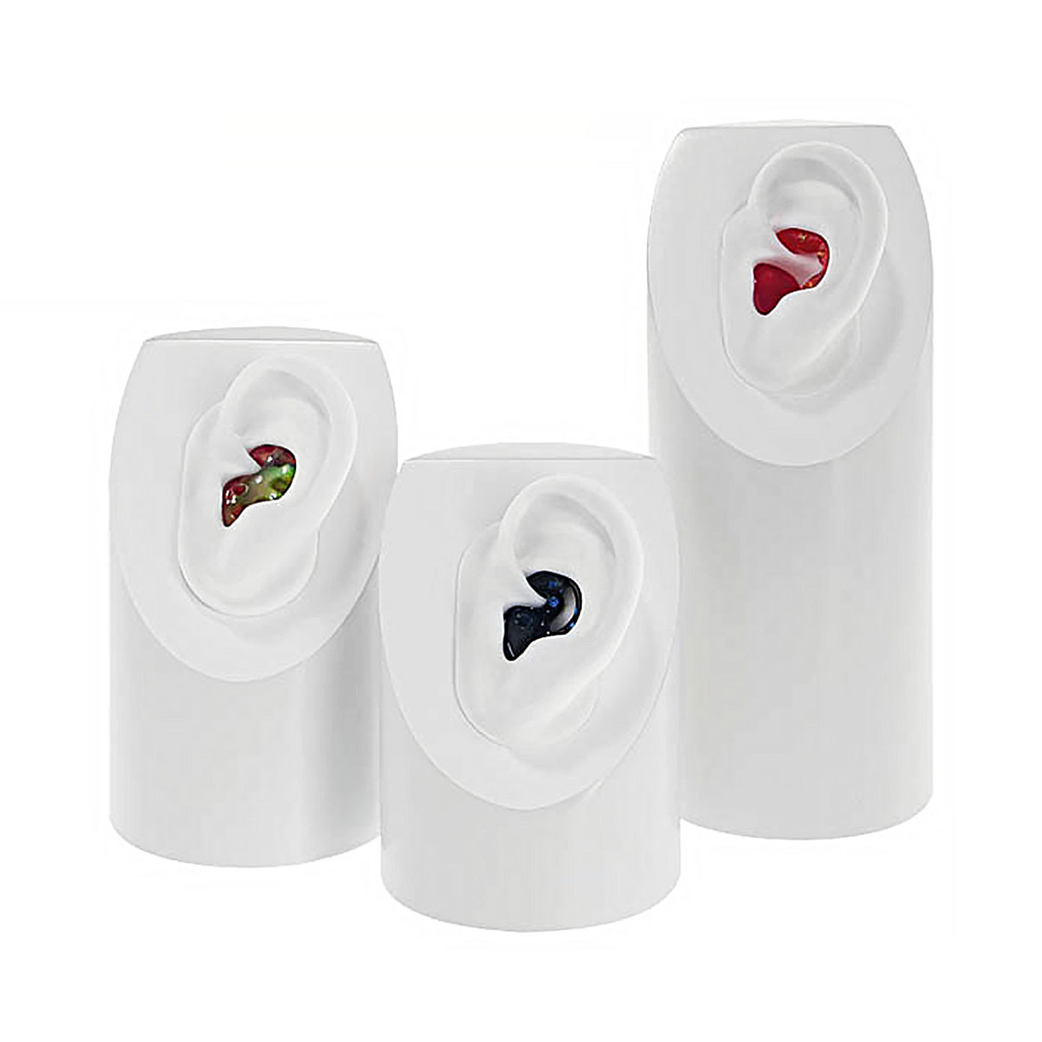 The presentation plinth is available in different sizes and colours, giving you a versatile and flexible way to present your products. Create a nice arrangement of several plinths or focus attention on a specific product by placing a single plinth. The plinth comes complete with a white demo ear - left or right of your choice - so you can immediately present your hearing aid, earpiece or hearing protection.