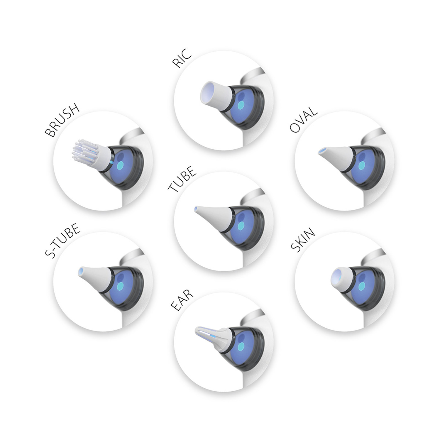 Read more...The mini vacuum cleaner has three settings and an amazing suction power that sucks up cerumen and other debris (possibly after drying with the dry-cap uv). The blue LED light in the vac-clean illuminates the surface to be cleaned and simultaneously has an antimicrobial effect. As many as seven attachments are included with this updated version, allowing the vac-clean to be used for multiple purposes. The cleaning attachments can be easily changed and cleaned. In addition, the vacuum cleaner has an integrated LiPo battery, which fully charged delivers a battery life of about 1 month. This enables mobile use, independent of mains voltage and cables.