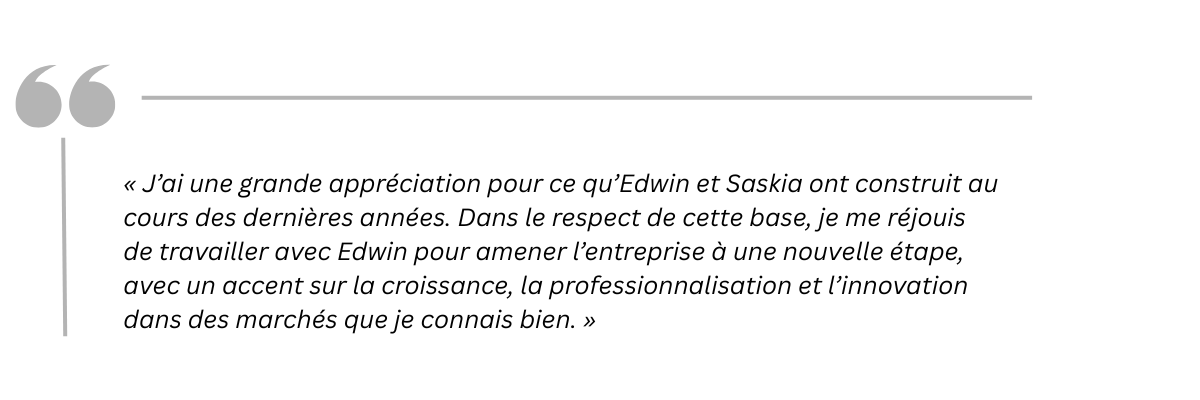 Edwin Mellink reste directeur et continue à diriger la gestion quotidienne, avec un accent constant sur les clients, la qualité et l’innovation. Il souligne :