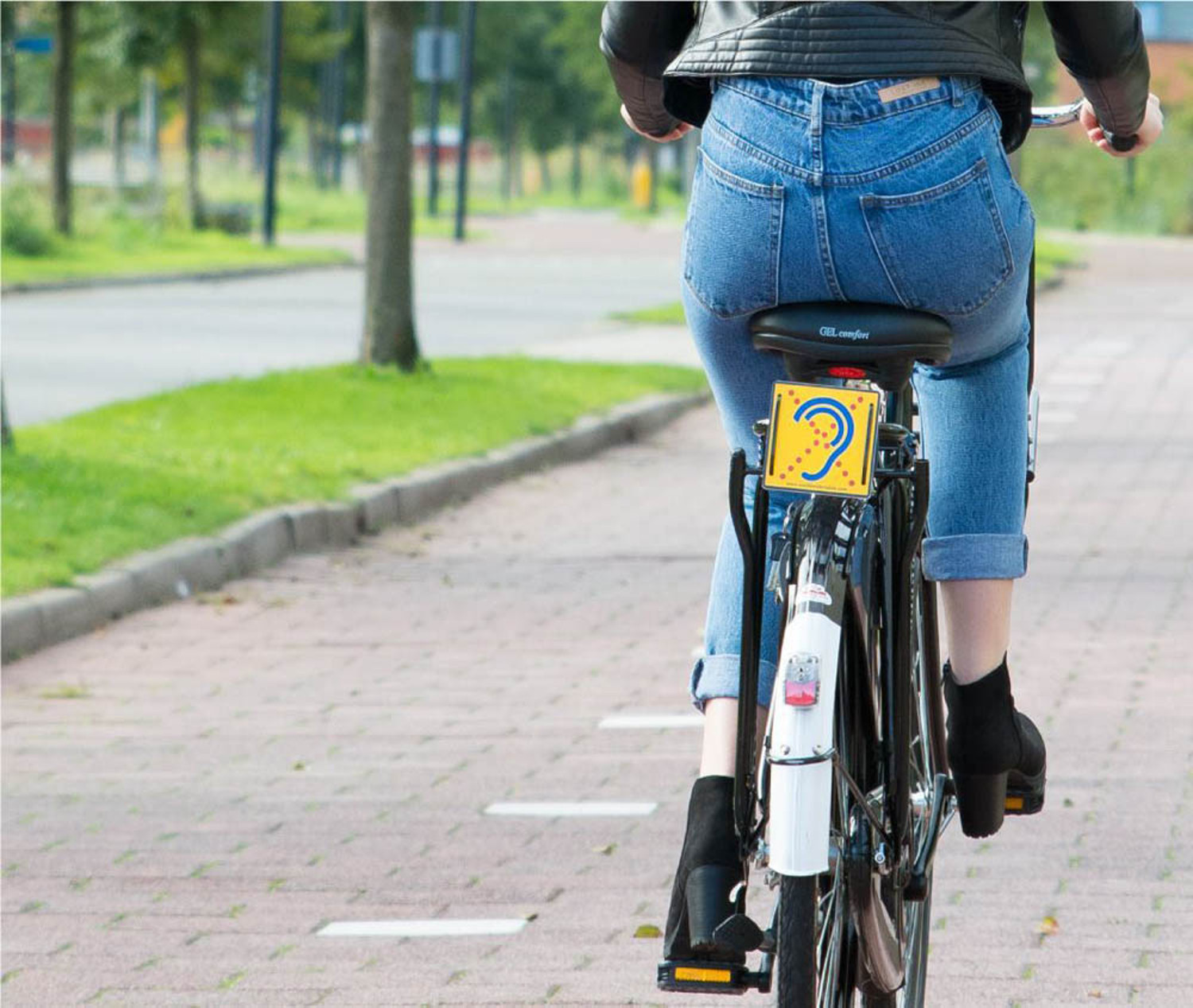 Dit bordje is ontwikkeld voor montage op fiets, scooter, scootmobiel etc. Het bordje is reflecterend en het is wettelijk toegestaan om deze op de plaats (en in plaats) van de reflector te monteren. Afhankelijk van de bevestiging kan dit met bijvoorbeerld schroeven of tie wraps.